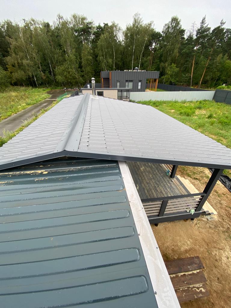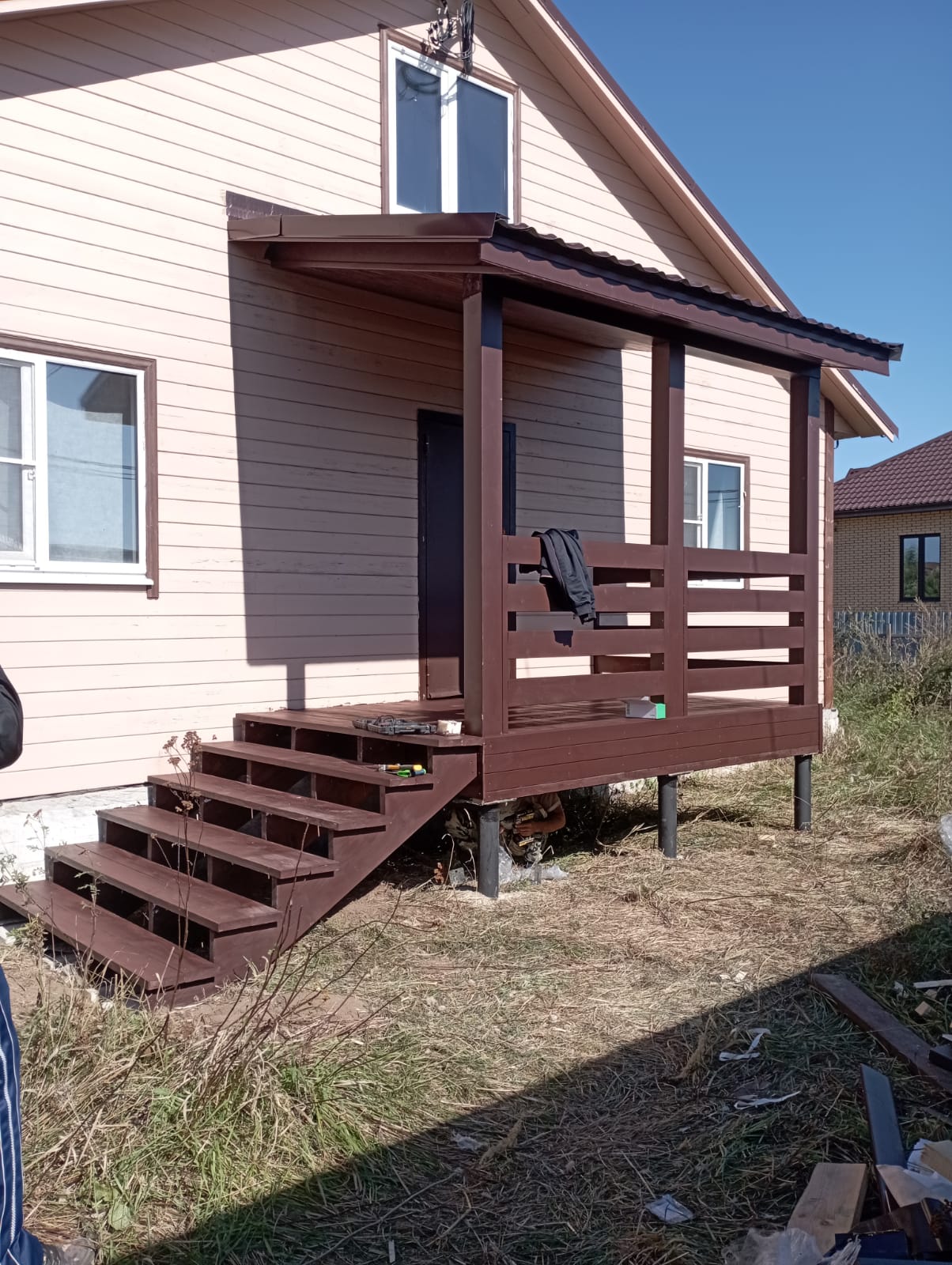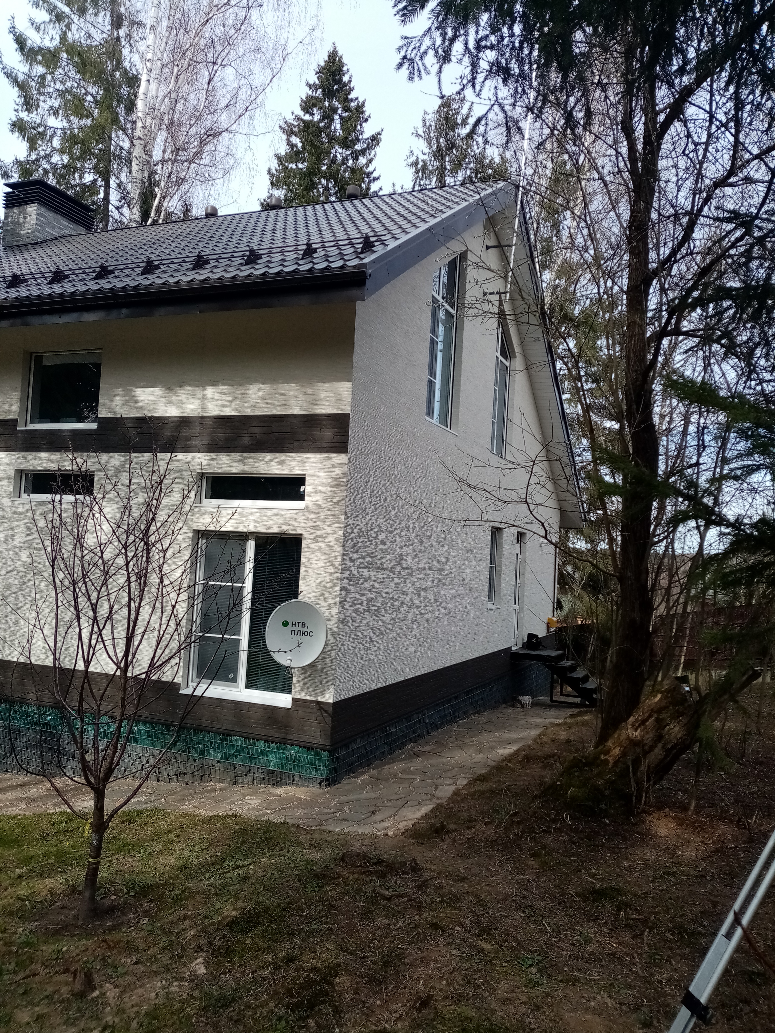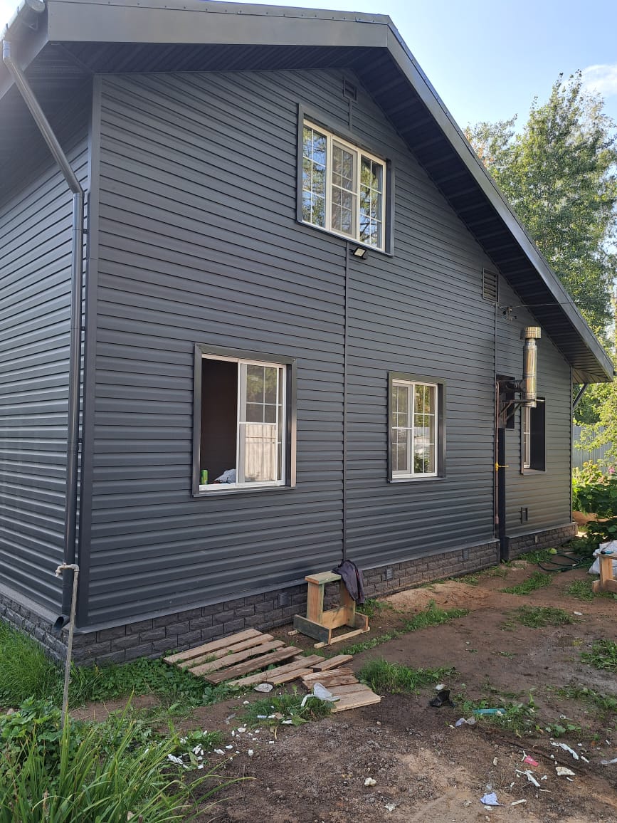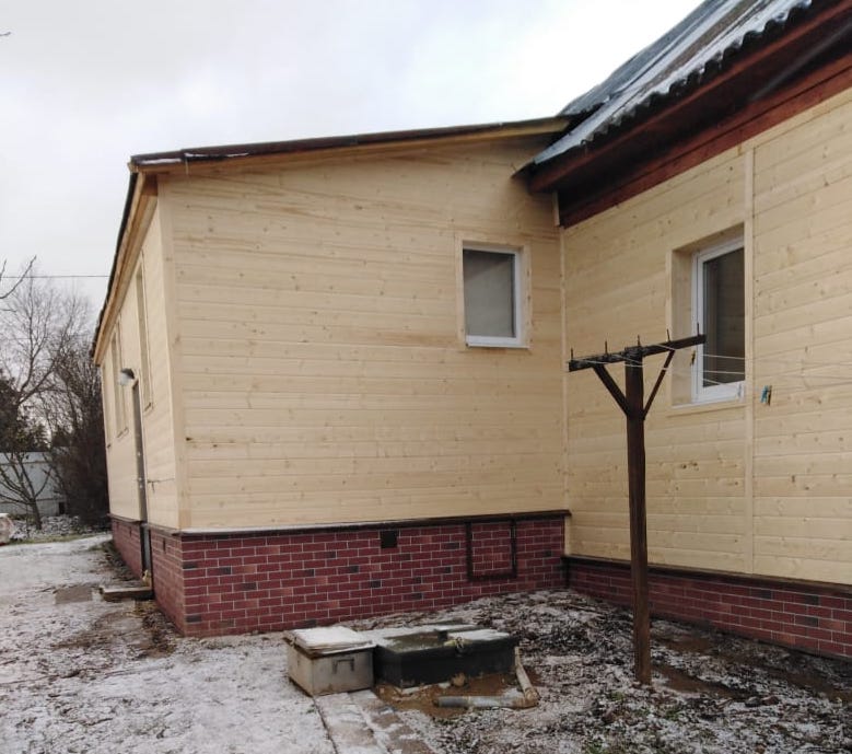 Отделка с утеплением бревенчатого дома с пристройками, отделка цоколя.